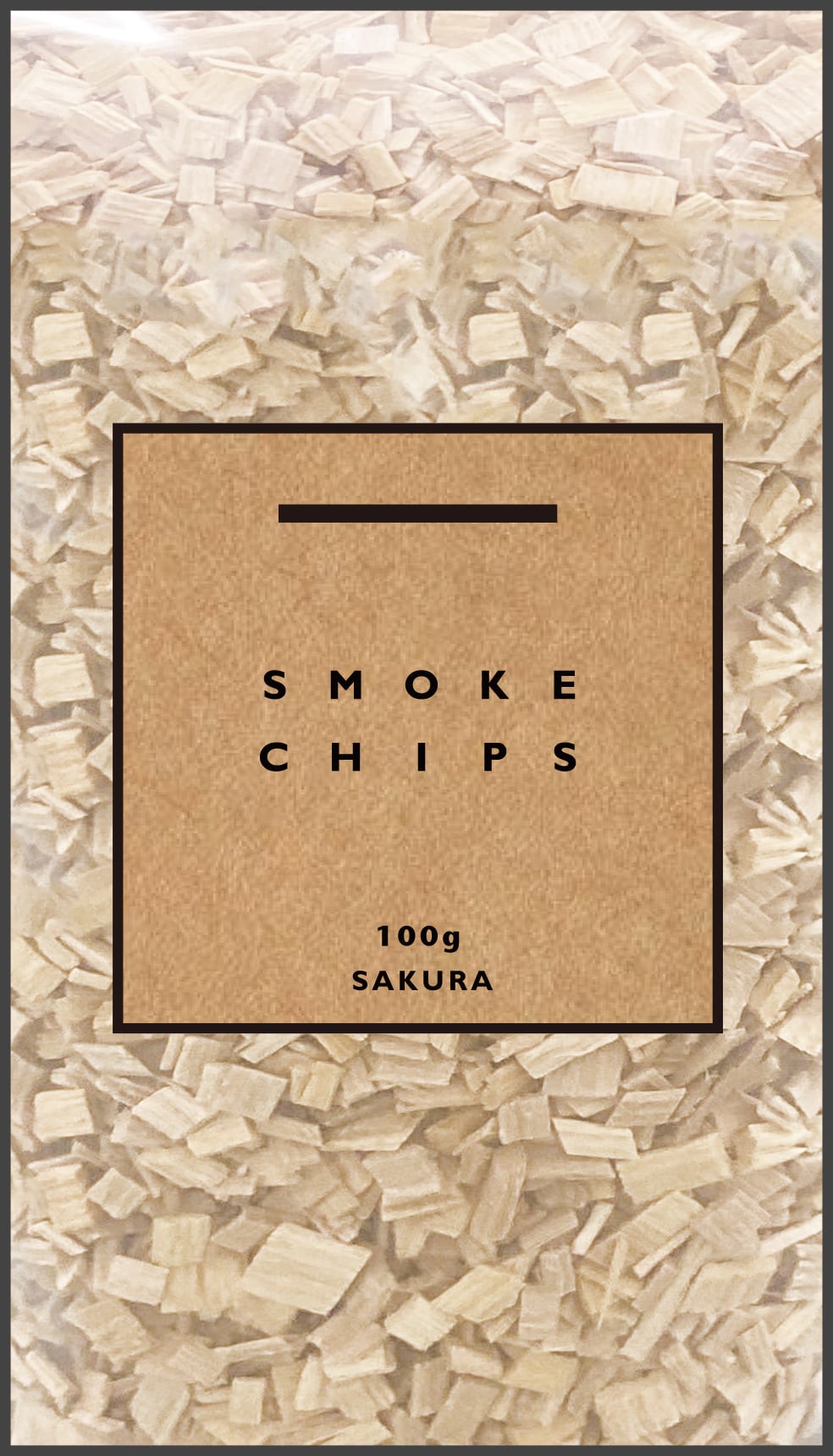 ベーシックなサクラの燻製チップ100g(燻製約5回分*)です。 smoke-podオリジナルパッケージです。 *(燻製1回につき大さじ5:約20g)